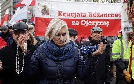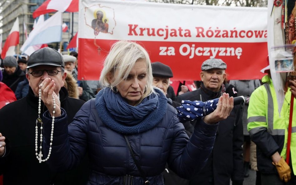 Uczestnicy Krucjaty Różańcowej za Ojczyznę po raz szósty modlili się w Święto Niepodległości przed Sejmem. W tym roku w związku z barierkami, które są ustawione przed parlamentem, modlący się nie otoczyli gmachu - tak jak było w ubiegłych latach.
