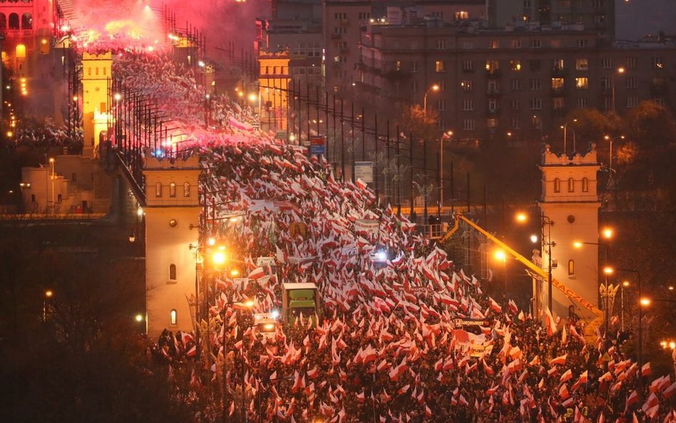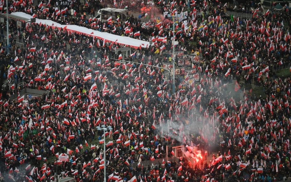 Według policji w Marszu Niepodległości wzięło udział 60 tys. osób, według stołecznego ratusza - 30 tys.