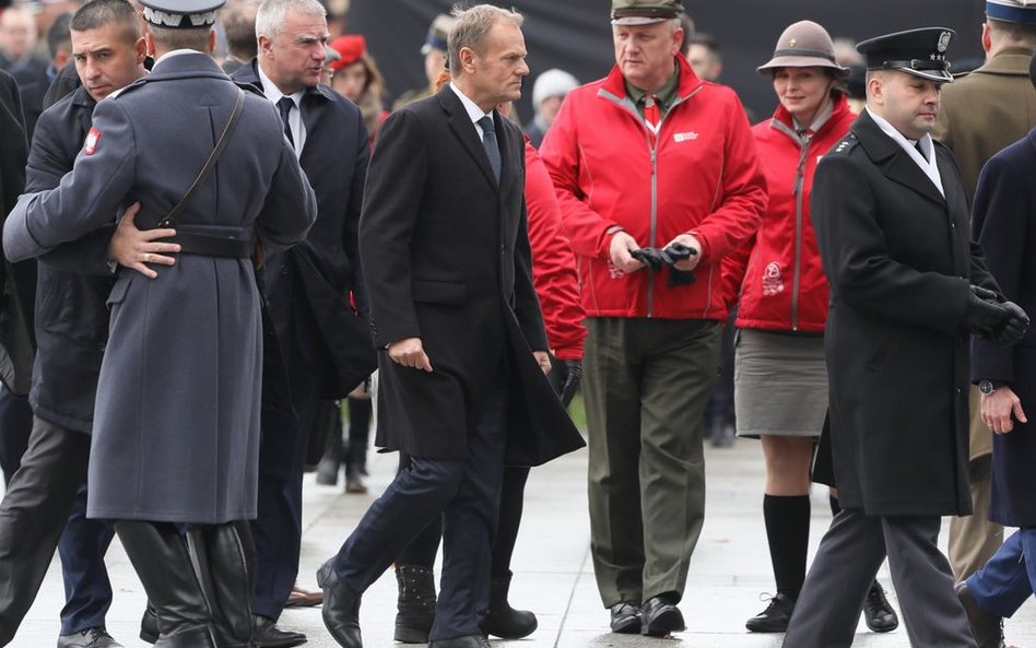Święto Niepodległości było, jest i będzie świętem wszystkich Polaków; żaden polityk w Polsce nie ma i nie będzie miał monopolu na patriotyzm - mówił w sobotę rano dziennikarzom b. premier, szef Rady Europejskiej Donald Tusk.