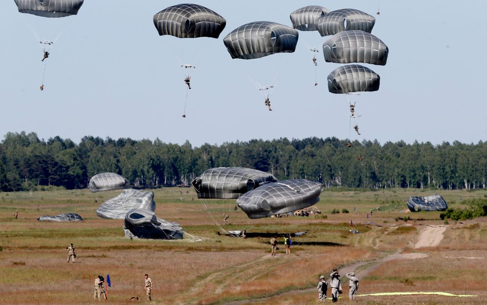 Ponad 1,2 tys. spadochroniarzy z Polski, Stanów Zjednoczonych i Wielkiej Brytanii wylądowało we wtorek na poligonie pod Toruniem w ramach ćwiczenia Anakonda-16. Część żołnierzy przyleciała bezpośrednio zza Atlantyku.