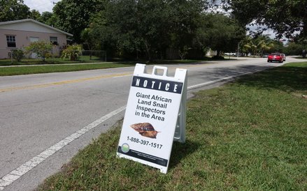 Gigantyczne afrykańskie ślimaki dorastają do rozmiarów tenisówki i świetnie służy im klimat południowej Florydy.