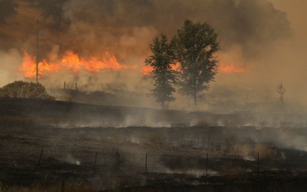 Trwająca od czterech lat susza powoduje rozległe pożary na północy stanu. Sytuację pogarszają burze z piorunami. W całym stanie z ogniem walczy ponad 9000 strażaków. W ubiegłym tygodniu zginął jeden z nich. W akcjach gaśniczych używane są śmigłowce Gwardii Narodowej.