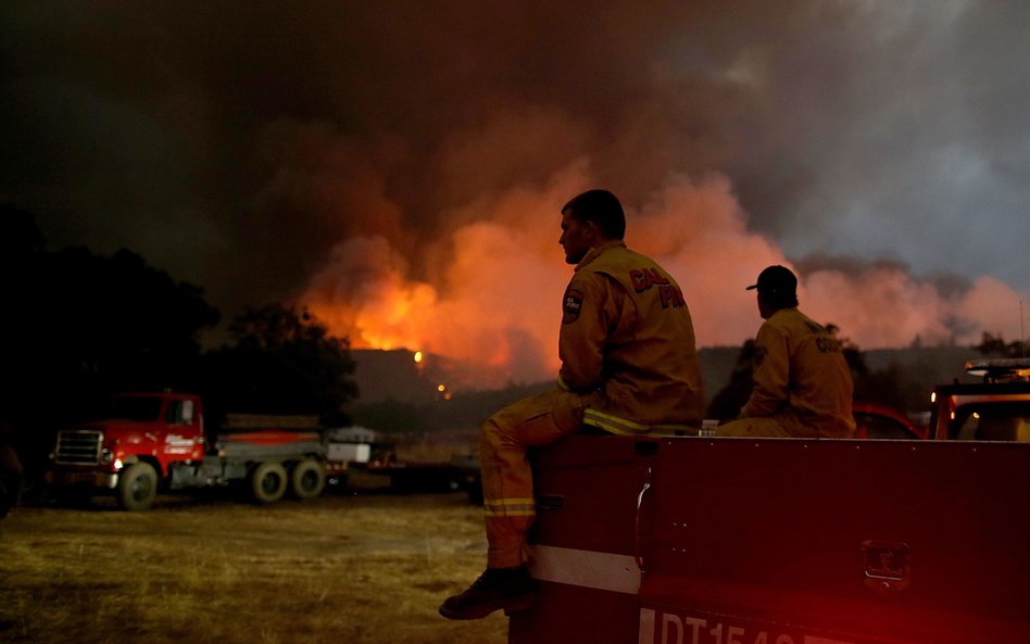 Na fotografiach widać strażaków gaszących największy z tegorocznych pożarów w rejonie Lower Lake.
