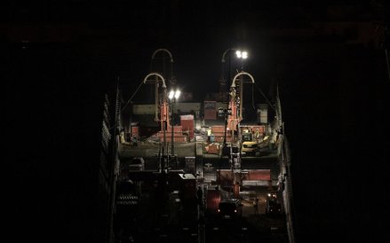 W piątek cztery potężne podnośniki, umieszczone na moście przy pomocy jeszcze większego dźwigu, rozpoczęły podnosić, a następnie powoli opuszczać betonową płytę o wymiarach 36 na 18 metrów, ważącą prawie 1000 ton. Podnośniki są takie same, jak te, które zostały wykorzystane przy akcji odwracania statku Costa Concordia w 2013 roku, po tym, jak osiadł na mieliźnie i wywrócił się, w wyniku czego zginęły 32 osoby.
