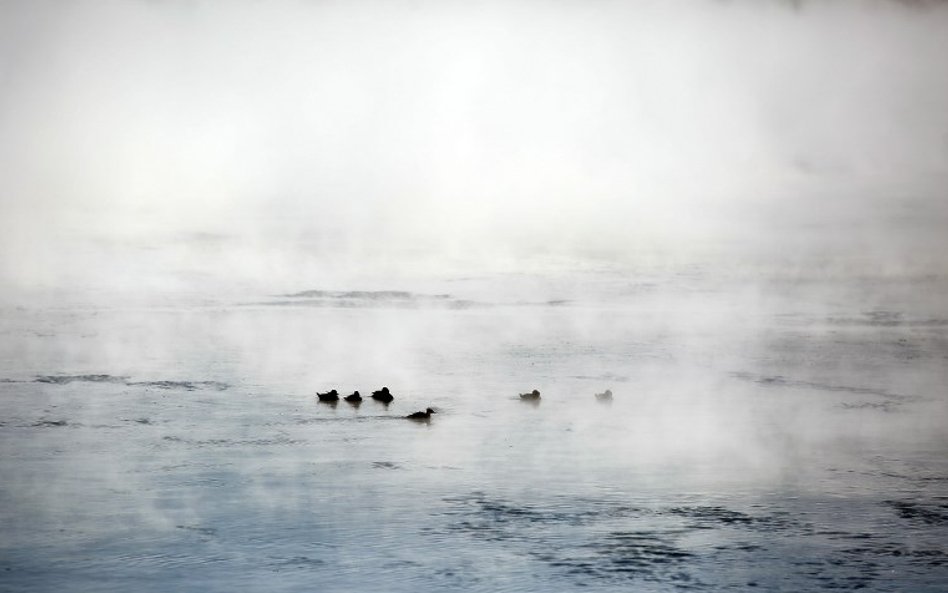 Temperatury są tak niskie, że znad zamarzniętego jeziora Michigan unosi się para wodna - dzieje się tak dlatego, że lód na powierzchni wody jest cieplejszy niż powietrze.