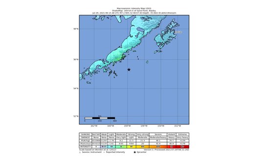 Centrum Ostrzegania przed Tsunami na Pacyfiku (PTWC) oceniło siłę trzęsienia ziemi na 8,1 magnitudy i dodało, że „trwa ustalanie, czy istnieje zagrożenie tsunami na Hawajach”. Ale według agencji US Geological Survey trzęsienie miało siłę 8,2, a epicentrum miało miejsce na głębokości 35 kilometrów i zlokalizowane było 91 kilometrów na wschód od miejscowości Perryville na Alasce.