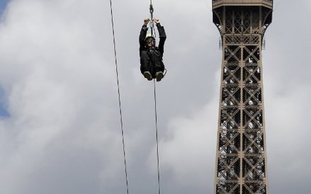 Zjazd z Wieży Eiffla na linie z prędkością "lecącej piłki tenisowej"