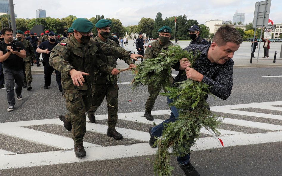 Żołnierze postanowili wynieść wieniec, co doprowadziło do szarpaniny.