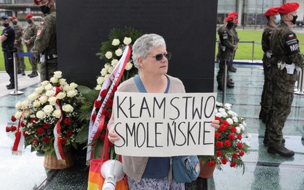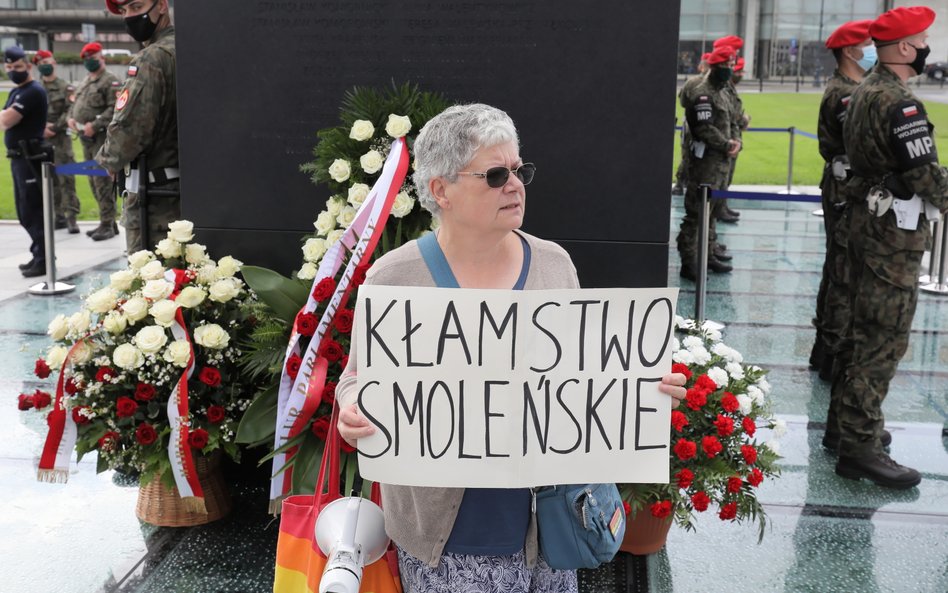 Przed pomnikiem pojawili się również protestujący, którzy chcieli położyć własny wieniec. Obecni na miejscu żołnierze uznali, że dołączony napis jest obraźliwy: "Pamięci 95 ofiar Lecha Kaczyńskiego, który ignorując wszelkie procedury, nakazał pilotom lądować w Smoleńsku w skrajnie trudnych warunkach. Naród polski. Spoczywajcie w pokoju"