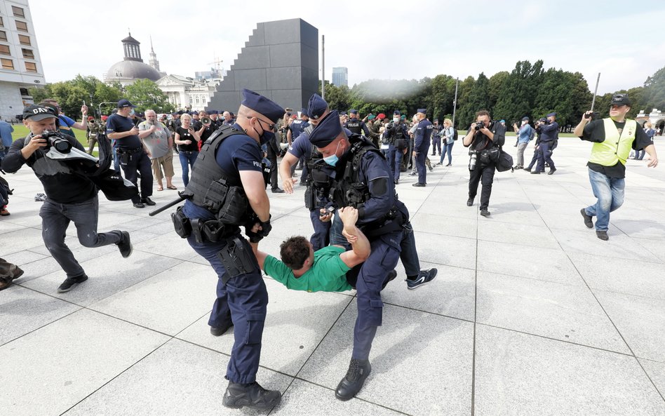 Rzecznik Komendy Stołecznej Policji nadkom. Sylwester Marczak poinformował, że funkcjonariusze byli zmuszeni do użycia środków przymusu bezpośredniego.