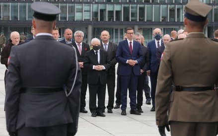 W sobotę rano kwiaty pod pomnikiem na pl. Piłsudskiego złożyli m.in. prezes PiS Jarosław Kaczyński i premier Mateusz Morawiecki. Kwiaty złożyli także szef klubu PiS Ryszard Terlecki, wicepremier i minister kultury Piotr Gliński, szef MON Mariusz Błaszczak, szef KPRM Michał Dworczyk, wiceprezes PiS Antoni Macierewicz.