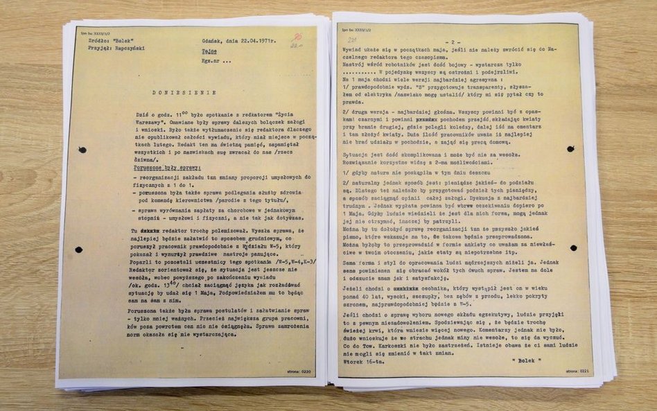 Teczka personalna TW "Bolka", która wchodzi w skład tych dokumentów, liczy 183 strony, teczka współpracy - 576.