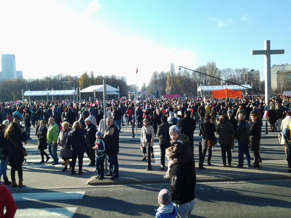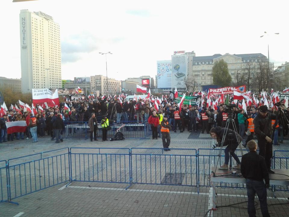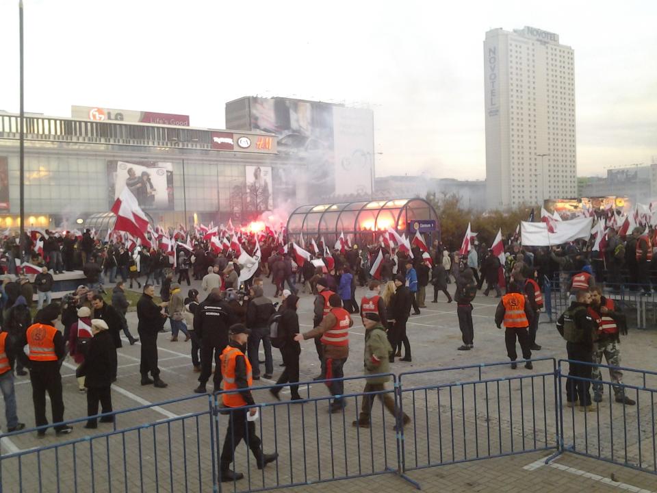 Na ul. Królewskiej rozpoczął się marsz "Razem dla Niepodległej". Uczestniczy w nim na razie kilkaset osób, ale dołączają się do niego widzowie. Na Nowym Świecie w pobliżu pomnika Kopernika grupa osób krzyczy : "A na drzewach zamiast liści, będą wisieć komuniści".