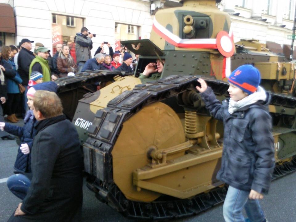 Krakowskie Przedmieście jest pełne ludzi, którzy chcą zobaczyć marsz prezydencki. Z szacunków urzędu miasta Warszawy wynika, że na tej ulicy jest kilkanaście tysięcy osób. Na czele zgromadzenia jedzie historyczny czołg z wojny polsko - bolszewickiej. Ludzie wychodzą z pobliskich kawiarni, aby zobaczyć defiladę. Niektórzy machają chorągiewkami. - Pogoda jest piękna i piękny przemarsz - mówi pani Maria, którą spotkaliśmy na Krakowskim Przedmieściu. - Czołg wygląda pięknie, jest wspaniale odrestaurowany. Wygląda jak nowy - ocenia.