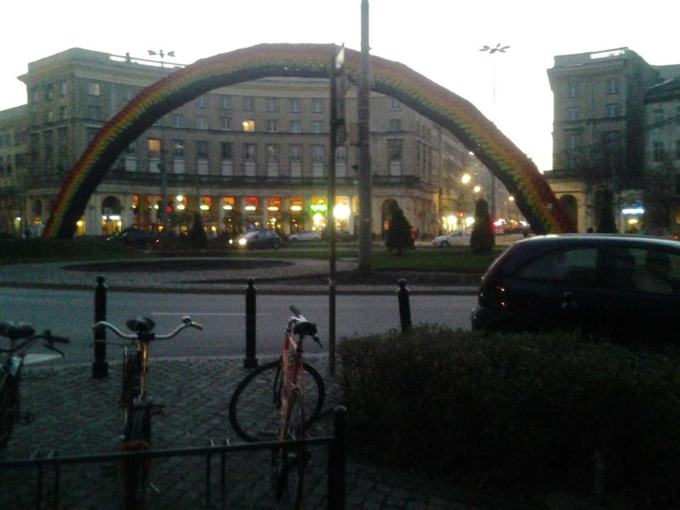 Plac Zbawiciela. pozostałości spalonej tęczy.