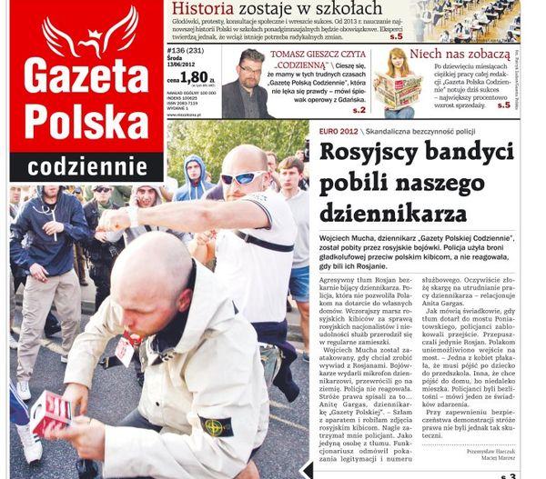 Zdjęcie swojego dziennikarza Wojciecha Muchy, uderzonego przez jednego z Rosjan, publikuje na okładce "Gazeta Polska Codziennie"
