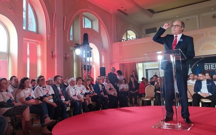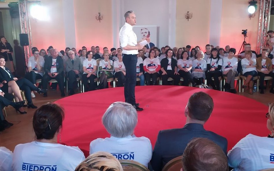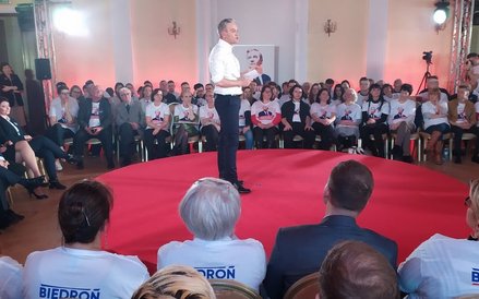 - Możemy żyć godnie, mówił Biedroń przytaczając przykład emerytki w Leszna, która ma emeryturę wysokości 800 złotych i musi korzystać z banku żywności. - Polska potrzebuje godności dnia codziennego. Potrzebuje dobrego żłobka, szkoły, szpitala. Potrzebujemy zrobić krok do przodu, wprowadzić równość.