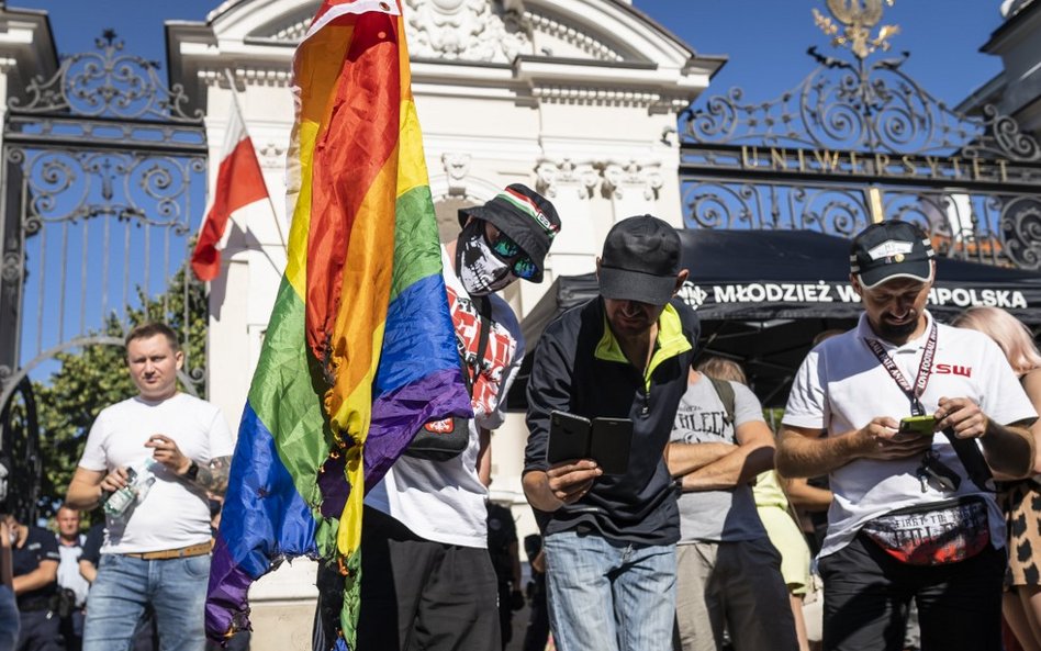Nacjonaliści spalili tęczową flagę, a działacze LGBT namalowali ją na ulicy. Obie grupy wznosiły w swoją stronę okrzyki. Rozdzielało ich kilkudziesięciu policjantów.