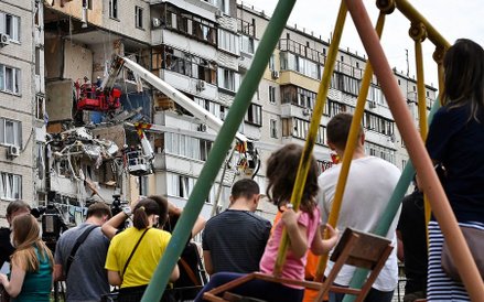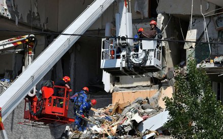 Silny wybuch w bloku w Kijowie. Cztery piętra zniszczone, zginęli ludzie