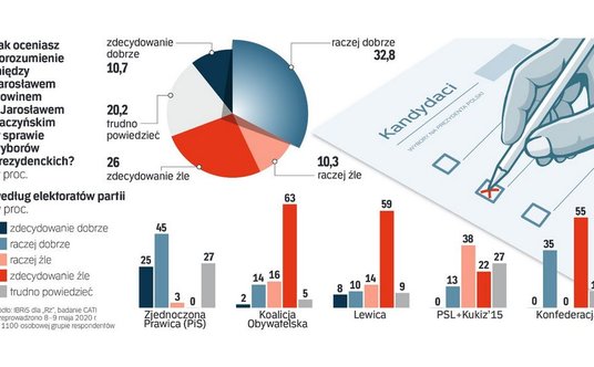 Sondaż przeprowadzony przez IBRiS na zlecenie „Rzeczpospolitej” odzwierciedla układ sił w gronie kandydatów na najwyższy urząd w państwie, a także opinie wyborców o porozumieniu w sprawie głosowania, które zawarli politycy Zjednoczonej Prawicy: Jarosław Kaczyński i Jarosław Gowin. Wyniki wskazują na to, że obecny prezydent Andrzej Duda nie może być pewny swojej miażdżącej (do tej pory) przewagi, a obywatele oczekują, że politycy dogadają się w sprawie formuły i terminu głosowania.
