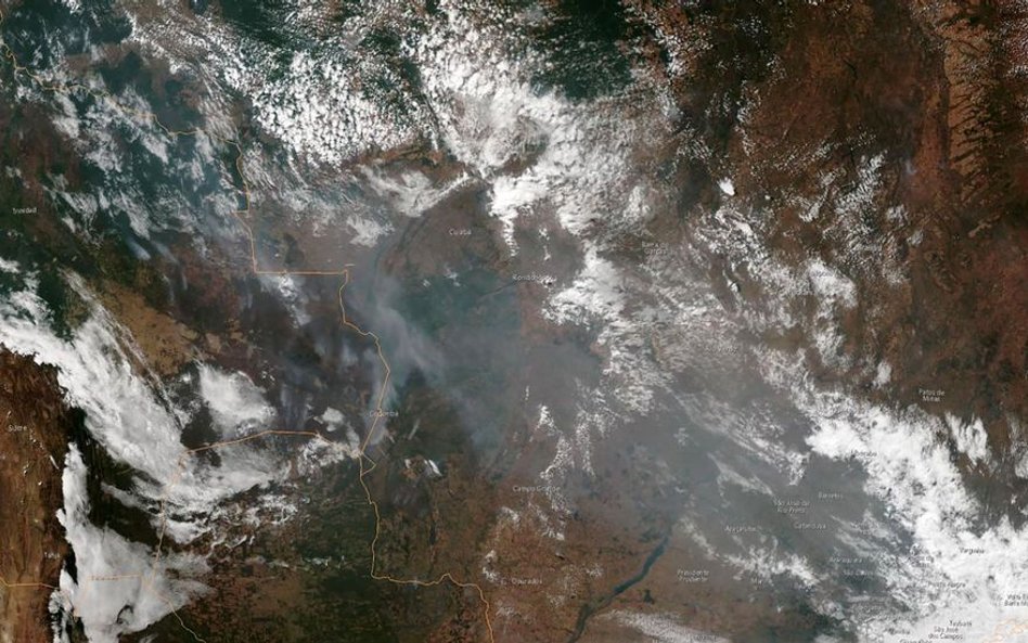 Kolorowe zdjęcia pokazujące dym unoszący się nad kilkoma stanami Brazylii, w których płonie Puszcza Amazońska NASA udostępniła na swojej stronie. Zdjęcia zostały wykonane 20 sierpnia 2019 roku.