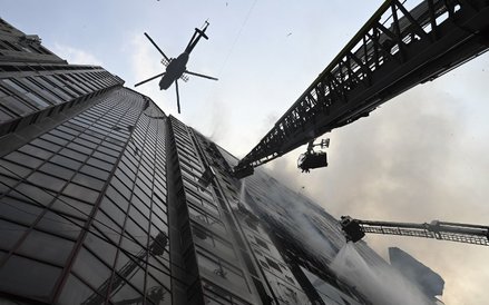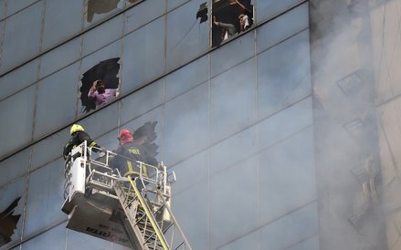 Pożar wybuchł w biurowcu znajdującym się w biznesowej części miasta.