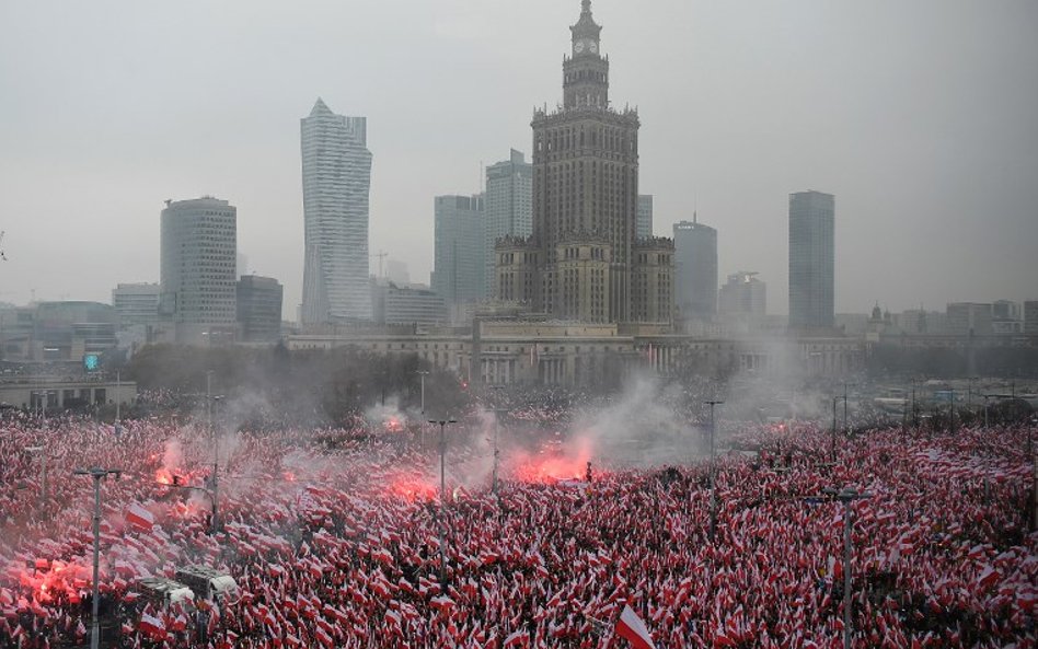 W Warszawie idą dwa marsze. Narodowcy właśnie ruszyli z ronda Dmowskiego, marsz państwowy z prezydentem na czele jest już na moście Poniatowskiego. Obydwa dzieli kilkaset metrów.
