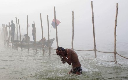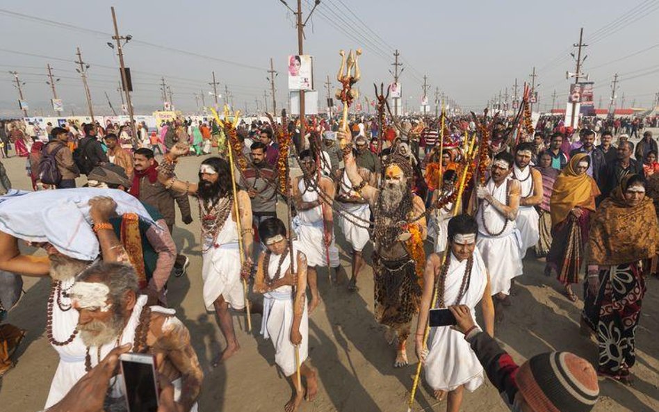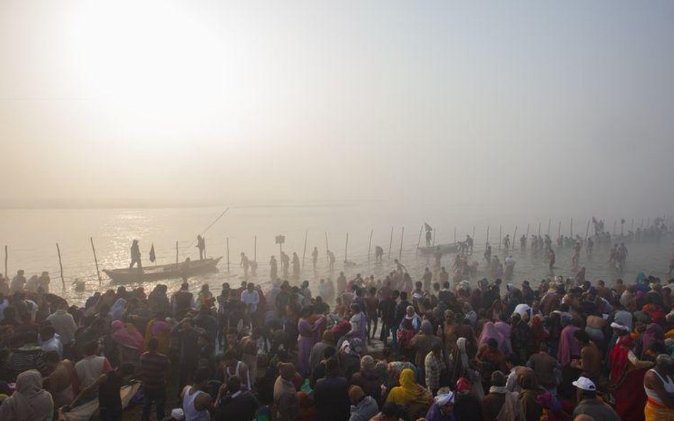 Miliony pobożnych Hindusów wybrało się w podróż nad brzegi Gangesu, by w ramach święta Magh Mela dokonać rytualnego obmycia w świętych wodach wielkiej rzeki