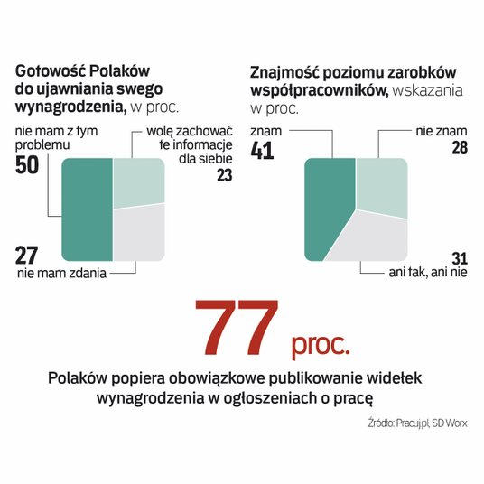 Spośród pracowników z 16 krajów Europy większą otwartość w tej kwestii przejawiali tylko Chorwaci (59 proc.) i Hiszpanie (55 proc.). Podobne wyniki pokazał marcowy sondaż zrealizowany przez ARC Rynek i Opinia na zlecenie serwisu Pracuj.pl; połowa jego uczestników wskazała, że wysokość wynagrodzeń w ich firmach powinna być jawna, a oni sami czują się na tę jawność gotowi.