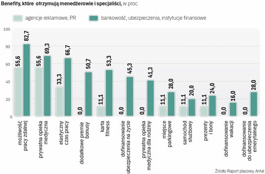 Istnieje spora różnica pomiędzy benefitami, które dostają menedżerowie i specjaliści, a tymi, które chcieliby dostać.
