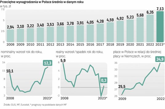 – Chcemy, żeby Polacy rozwijali skrzydła. Nasza wizja rozwoju jest taka, aby na koniec naszej – mam nadzieję, trzeciej kadencji – średnie wynagrodzenie w Polsce wynosiło przynajmniej 10 tys. zł – stwierdził ostatnio premier Mateusz Morawiecki podczas jednego z wieców wyborczych PiS. A za sześć lat zarobki Polaków mają sięgać poziomu francuskiego. Obecnie we Francji na rękę zarabia się średnio ok. 41,1 tys. euro rocznie, a w Polsce – ok. 15,6 tys. euro rocznie.