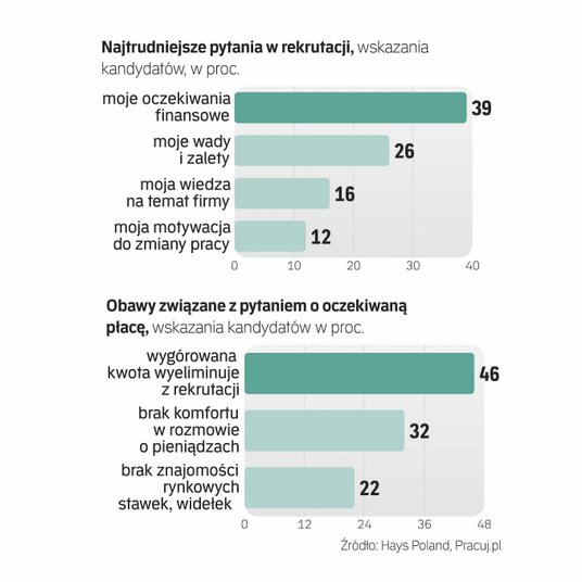 Te obawy specjalistów nie dziwią rekruterów, w tym ekspertów Hays Poland, którzy potwierdzają, że zawyżone oczekiwania finansowe kandydata faktycznie ograniczają jego szanse na otrzymanie pracy. Pracodawca może bowiem stwierdzić, że na tak drogiego pracownika zwyczajnie go nie stać. Natomiast jeśli nawet kandydat zgodzi się ostatecznie na niższą kwotę, to firma może się obawiać jego mniejszej motywacji do pracy.