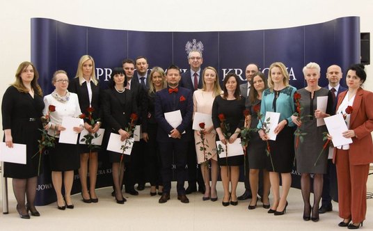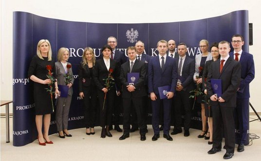 W uroczystości udział wzięli: Zastępca Prokuratora Krajowego Agata Gałuszka – Górska, Dyrektor Biura Kadr Jarosław Hołda, Zastępca Dyrektora Biura Kadr Leszek Drwęski, Dyrektor Biura Prokuratora Krajowego Jarosław Duś oraz Dyrektor Biura Prezydialnego Przemysław Funiok.