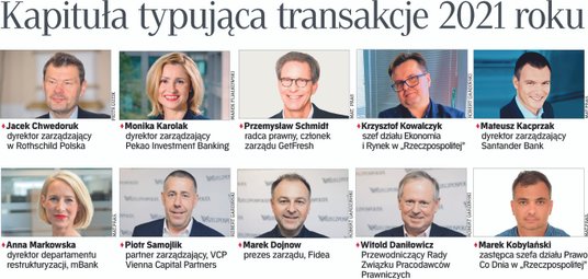 Najważniejsze transakcje, tak jak w poprzednich latach, klasyfikujemy w ośmiu kategoriach: fuzji i przejęć, transakcji funduszy inwestycyjnych (private equity), rynków kapitałowych – transakcji dłużnych, rynków kapitałowych – transakcji na akcjach, finansowania, restrukturyzacji, nieruchomości i transakcji zagranicznych. Ocenia je specjalna kapituła powołana przez redakcję „Rzeczpospolitej”, złożona ze znawców rynku, w tym m.in. przedstawicieli banków i funduszy inwestycyjnych. Ich codzienna praca polega m.in. na planowaniu i finansowaniu inwestycji, restrukturyzacji, doradztwie biznesowym i współpracy z dużymi spółkami, a doświadczenie sprawia, że mogli się stać kompetentnymi i obiektywnymi recenzentami zjawisk na polskim rynku. W skład kapituły weszli także dwaj członkowie, nietypujący transakcji: Witold Daniłowicz, radca prawny i przewodniczący Rady Polskiego Związku Pracodawców Prawniczych, a także Marek Kobylański, zastępca szefa działu Prawo Co Dnia „Rzeczpospolitej”.
