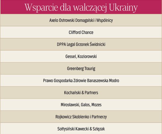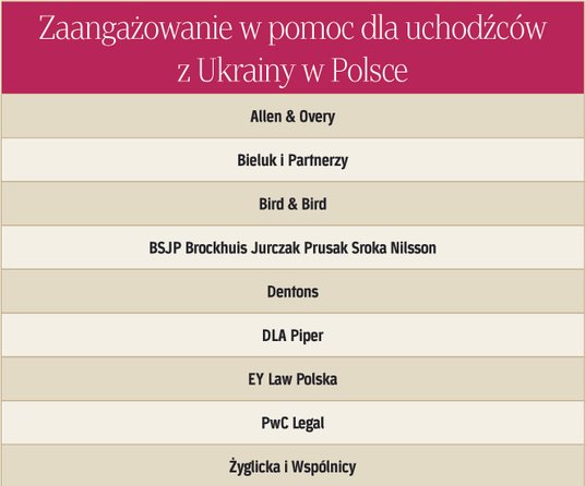 Redakcyjna kapituła wyróżniła kancelarie, które najmocniej zaangażowały się w pomoc dla uchodźców z Ukrainy w Polsce i udzieliły najistotniejszego wsparcia dla walczącej Ukrainy. Równorzędne wyróżnienia zostały przyznane łącznie dziewiętnastu kancelariom, właśnie w tych dwóch kategoriach. Kapitułę utworzyli: Zuzanna Dąbrowska, zastępczyni szefa działu krajowego „Rzeczpospolitej”, Tomasz Pietryga, wicenaczelny „Rz”, sekretarz redakcji Kazimierz Groblewski, red. Mateusz Rzemek z działu prawa i Wojciech Tumidalski, zastępca kierownika tego działu.