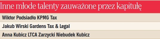 Uczestników rankingu poprosiliśmy o przedstawienie jednej wyróżniającej się osoby, która ma na koncie osiągnięcia, mimo że tytuł doradcy posiada krócej niż pięć lat. Wyboru dokonała kapituła. Co ciekawe, wszyscy jej członkowie podkreślali, że konkurencja jest bardzo wyrównana. Prof. Hanna Litwińczuk stwierdziła nawet, że wybór w tej konkurencji to najtrudniejsze zadanie, gdyż z opisów wynika, że są to po prostu geniusze podatkowi.