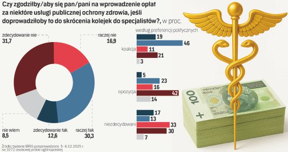 Przeciwko wprowadzeniu opłat za niektóre usługi publicznej ochrony zdrowia, nawet jeśli doprowadziłoby to do skrócenia kolejek do specjalistów, wypowiedziało się łącznie 48,6 proc. respondentów. Osoby skłonne dołożyć się do leczenia w publicznej ochronie zdrowia, żeby szybciej dostać się do lekarza, nadal stanowią mniejszość, ale ich odsetek to 42,9 proc., w tym 12,6 proc. to zdecydowani zwolennicy takiego rozwiązania.